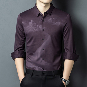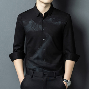 长袖衬衫男士中青年休闲宽松时尚花衬衣春秋季字母印花上衣男潮