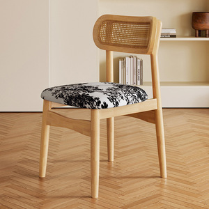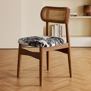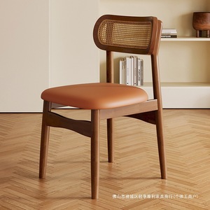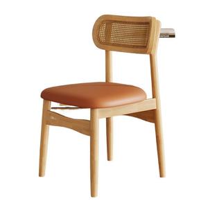 实木餐椅家用藤编椅子高级靠背带软包法式餐椅藤椅餐桌椅饭店民宿