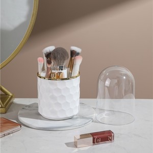 蜂窝形电镀款收纳盒防尘防雾带盖旋转盒收纳化妆品化妆刷笔筒