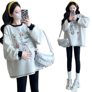 大码孕妇卫衣春秋新款长袖T恤上衣女韩版时尚宽松减龄显瘦潮