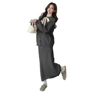 孕妇装秋装套装2025新款秋冬加厚针织毛衣开衫半身裙两件套高级感