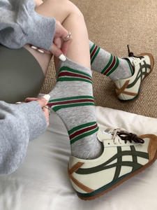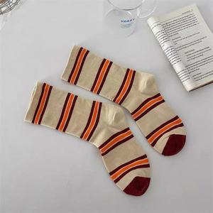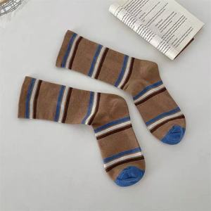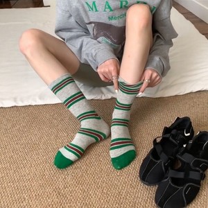小众韩版小腿袜夏拼色条纹中筒袜子女春秋薄款舒适百搭休闲堆堆袜