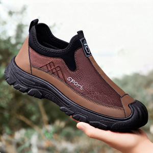 鞋子男休闲鞋一脚蹬懒人鞋皮面男鞋软底舒适爸爸鞋透气不臭脚单鞋