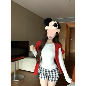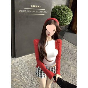 2025秋季新款花边长袖针织开衫外套圆领T恤上衣高腰格子裤套装女