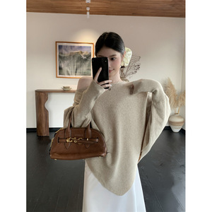 秋冬新款宽松蝙蝠袖软糯慵懒感百搭毛针织衫女上衣