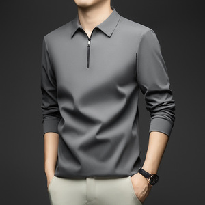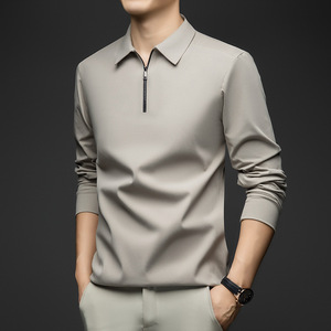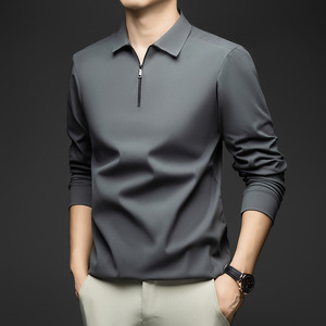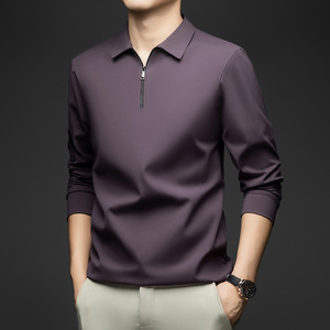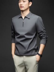 秋款男士长袖t恤休闲打底百搭翻领上衣新款锦氨无痕磨毛半拉链T恤