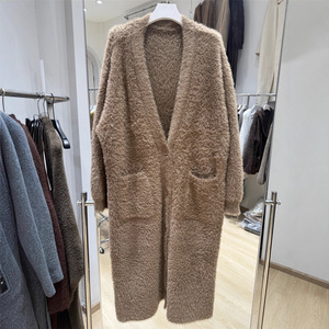 韩国订单秋冬装新款V领单排扣慵懒风高个子加长款针织毛衣外套潮