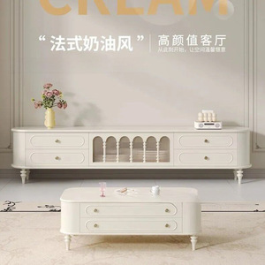 【新款】实木电视柜法式奶油风客厅家具电视柜茶几组合家用现代风
