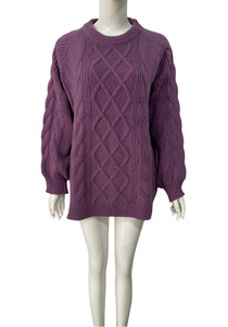 欧美跨境秋冬新款针织衫亚马逊宽松大码纯色粗针套头圆领麻花毛衣