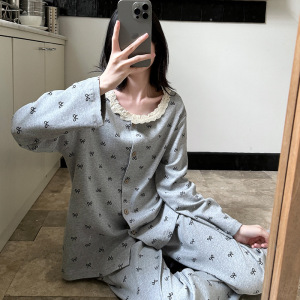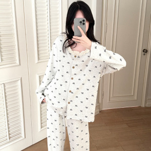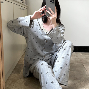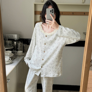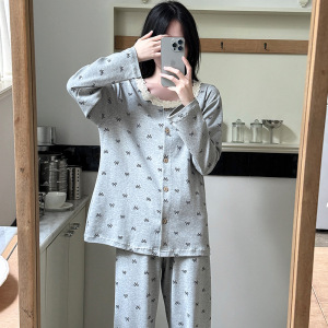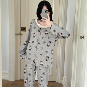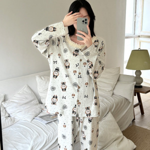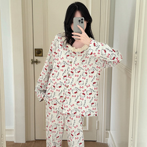 L601(纯棉)春秋季甜美卡通长袖睡衣女开衫圆领套装