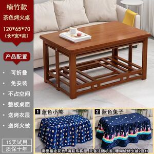 无烤火被【送烤衣层+耐高温】 、1.2米茶色竹烤火桌【加厚桌面】