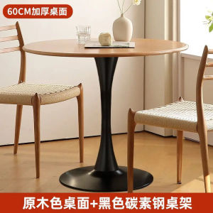 北欧复古胡桃圆形实木圆桌餐桌家用小户型郁金香咖啡阳台中古洽谈