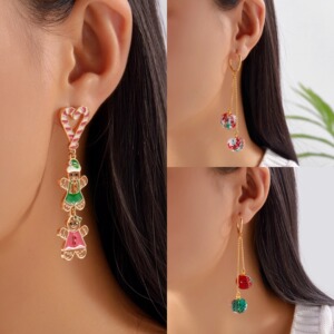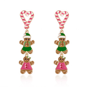 欧美跨境圣诞节饰品彩色毛球流苏耳环拐杖爱心姜饼人合金耳环批发