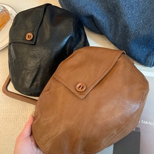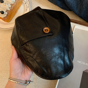 日系纽扣pu皮质前进帽女小众设计大头围显脸小气质反戴贝雷帽子潮