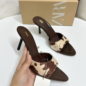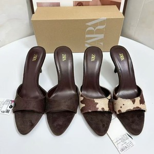 ZA2025秋季新款女鞋时尚尖头漏趾后空细高跟外贸出口女高跟凉拖鞋