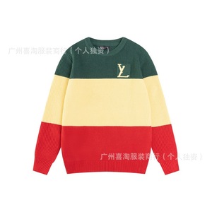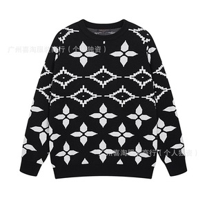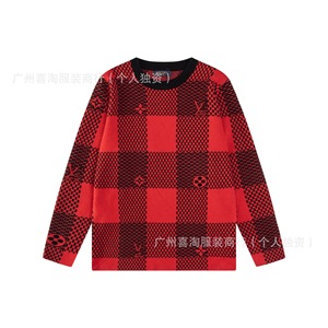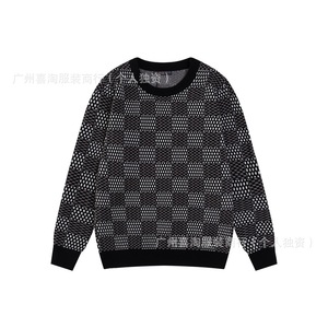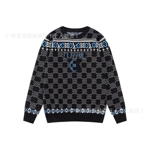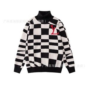 跨境高版本 驴家2025秋冬新款字母提花棋盘格针织长袖毛衣男女款