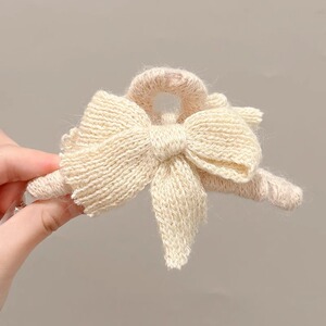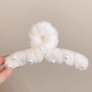 3#白色蝴蝶结珍珠毛球-底夹11cm