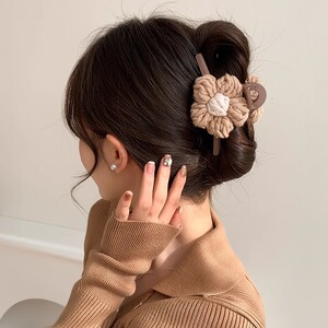 10#【大号】卡其色花朵抓夹 【约13cm】
