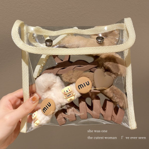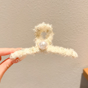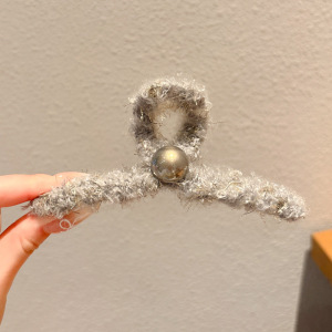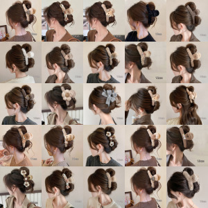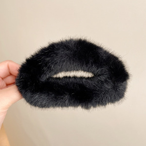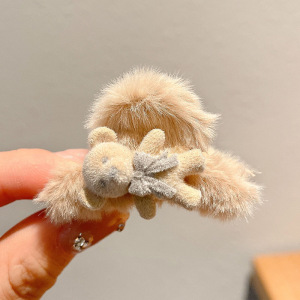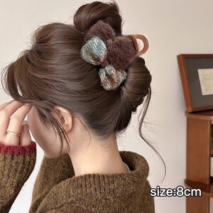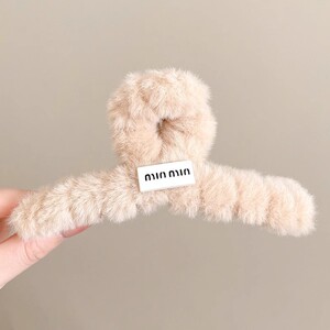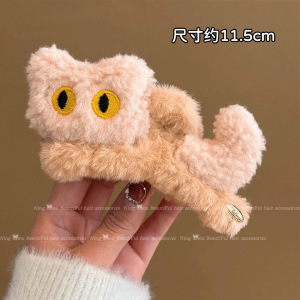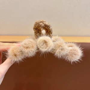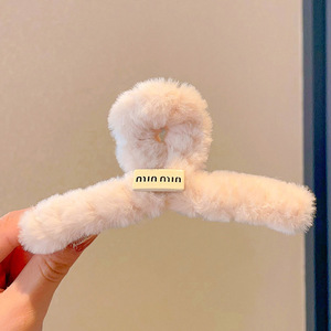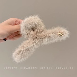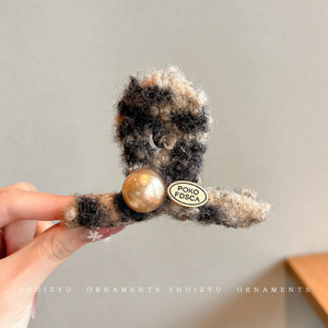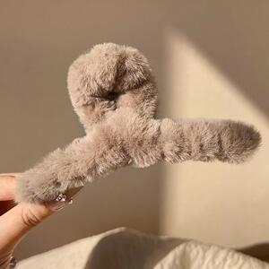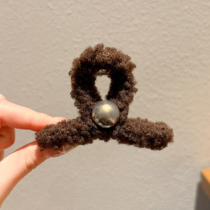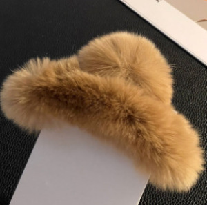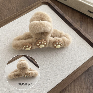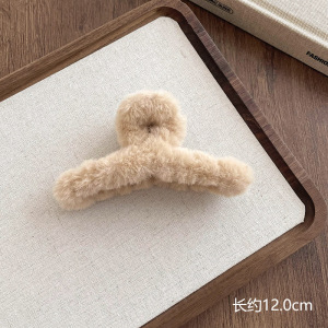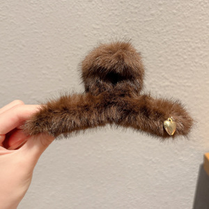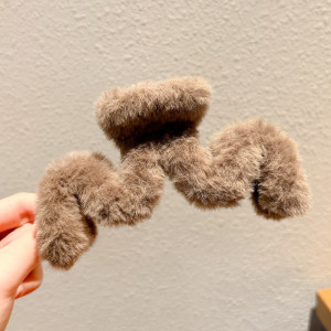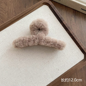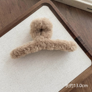 头饰毛茸茸发夹美拉德盘发小香风发饰抓夹女轻奢咖色高级感鲨鱼夹