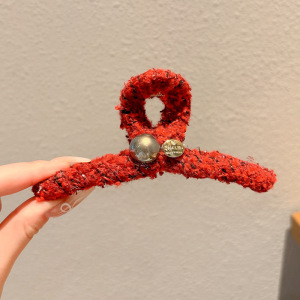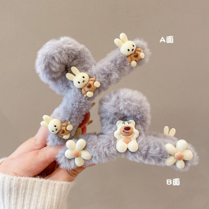 4#卡粉色毛绒波浪抓夹(约15cm)