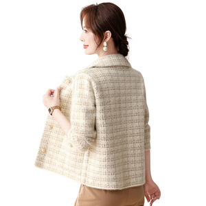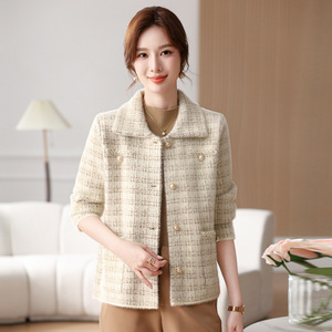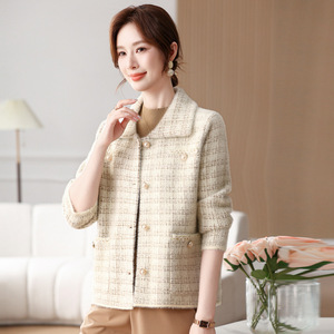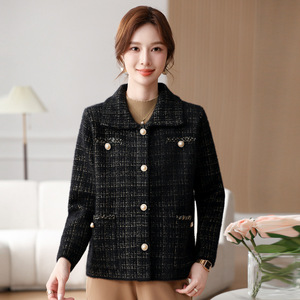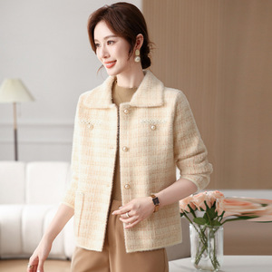 洋气妈妈装秋季外套小香风翻领新款中老年女装春秋款气质夹克上衣