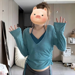 大码胖mm挂脖吊带背心t恤女2025新款夏季显瘦遮肉小衫两件套上衣
