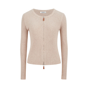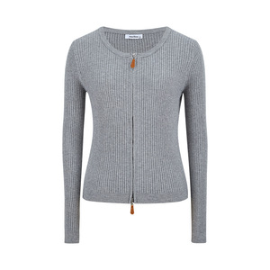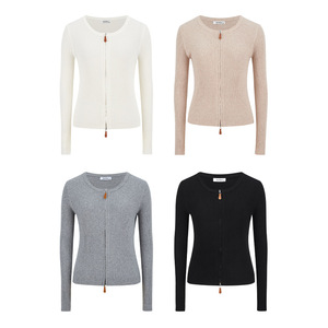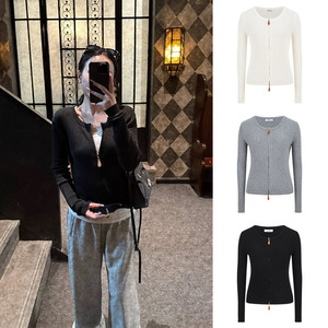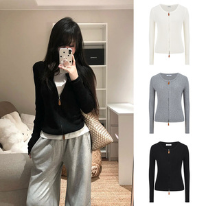 Moses Queen/魔西女王复古皮牌拉链宽松针织开衫春秋黑色小外套女