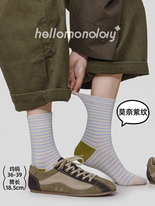 85813*诸暨袜子女秋季撞色条纹中筒袜运动松口无骨棉长袜防臭吸汗