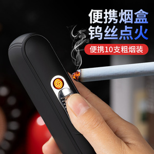 点烟器烟盒随身便携烟盒打火机一体粗烟10支装下滑点火点烟器烟盒