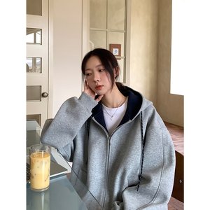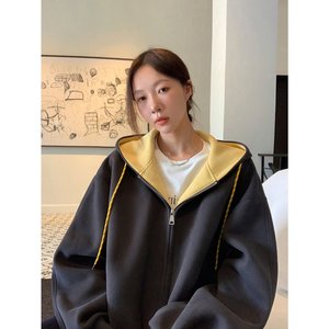 2025秋季美式复古学院风海军披肩领开衫卫衣男女宽松拉链外套潮