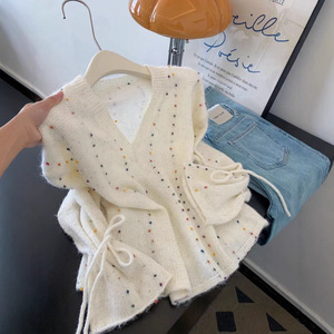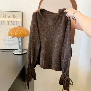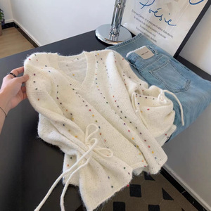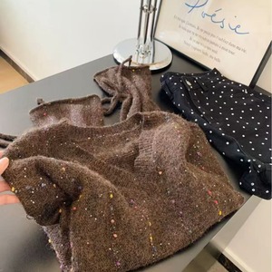 欧货重工高级感藏青色点纱羊绒毛衣女2025秋季软糯套头印花针织衫