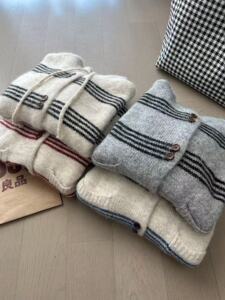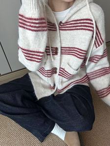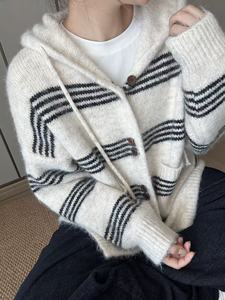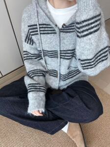 【条纹大被子】糯糯韩系温柔条纹连帽毛衣秋冬慵懒感氛围百搭开衫