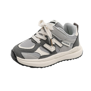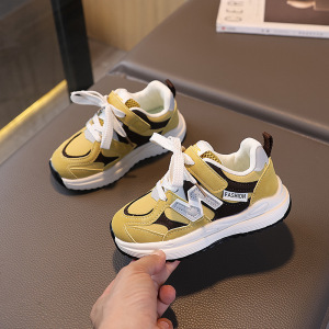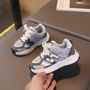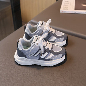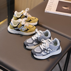 儿童鞋2025春秋季新款透气男童运动德训鞋韩版拼色皮面阿甘女童鞋