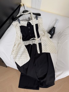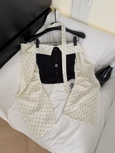 H2AN1 STUDIO丨波点芭蕾风长袖一字肩抹胸上衣辣妹阔腿裤套装