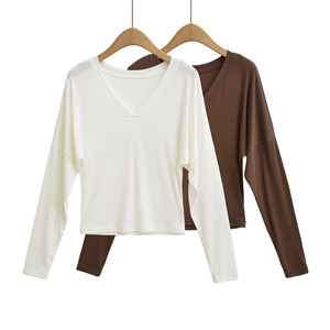 ins博主风慵懒感长袖T恤女秋季新款百搭休闲显瘦蝙蝠袖宽松上衣潮