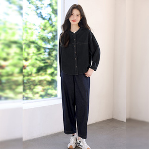 牛仔套装女春秋2025新款时尚宽松中年妈妈气质减龄休闲薄款两件套