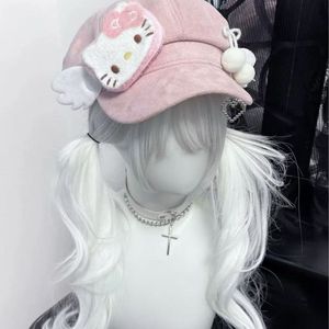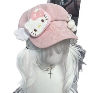 2025年新款手工原创亚文化粉色八角帽二次元kitty甜酷可爱显脸小