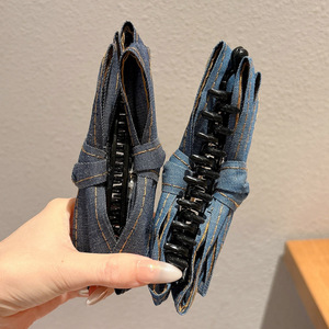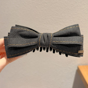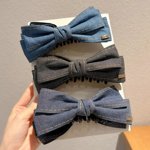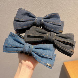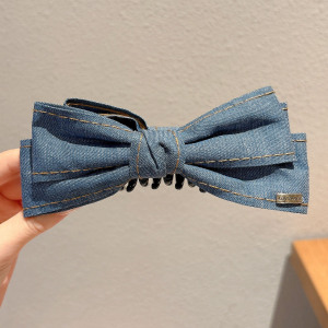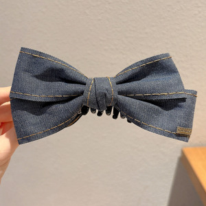韩系时髦牛仔蝴蝶结发夹简约高级感后脑勺大号鸭嘴夹甜美飘带发夹