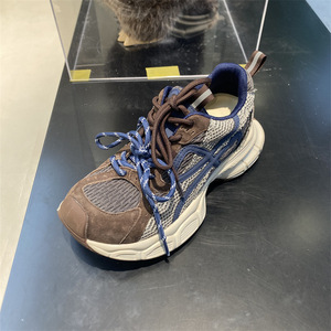 蝶澳2025秋季新款磨砂真皮网面时尚老爹鞋百搭厚底增高休闲女鞋潮