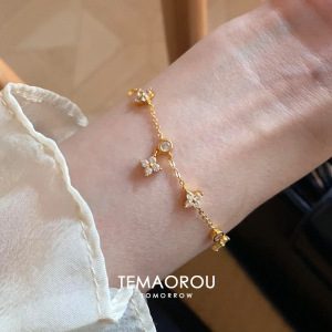 法式轻奢锆石菱形花朵手链时尚精致气质百搭手环小众高级感手饰女