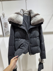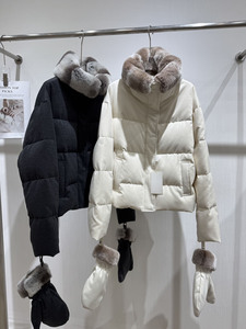 冬季新款高级简约鹅绒外套女2025濑兔毛领赠送手套保暖面包羽绒服