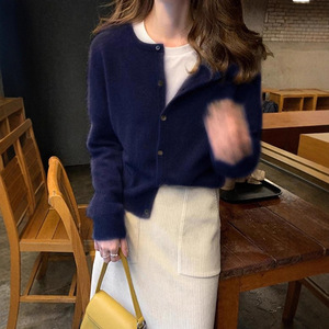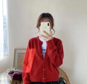 秋季新款高级感灰色开衫女短款圆领针织衫超火cec外套上衣潮