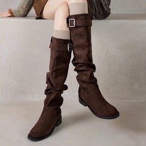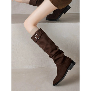 牛皮版~小个子绒面堆堆靴长筒2025新款秋冬季骑士靴女鞋
