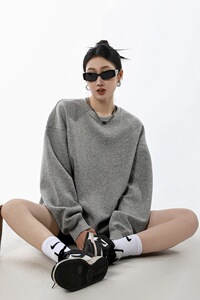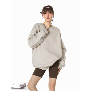 ICH MODE 美式圆领灰色卫衣女春季新款宽松慵懒纯色套头外套上衣