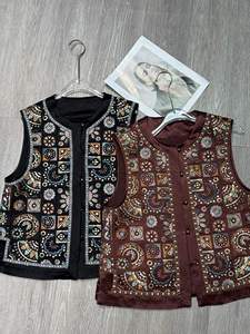 二色 新中式满身重工刺绣褶皱醋酸马甲2025秋季复古小众盘扣上衣