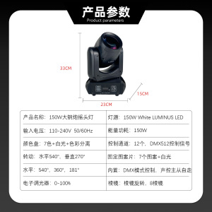 150W大钢炮摇头灯LED光束灯七彩旋转图案灯KTV清吧包房灯舞台灯光