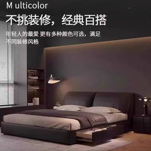 意式轻奢大象耳朵真皮床现代极简主卧大床小户型双人床婚床皮艺床