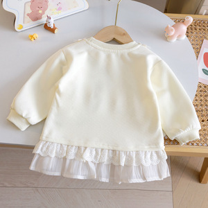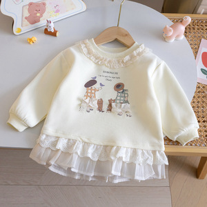 女童卡通秋季卫衣25新款时髦小女孩印花上衣女宝宝蕾丝花边领童装