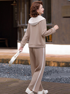 中年妈妈时尚运动两件套女2025春秋装新款阔太太连帽卫衣休闲套装