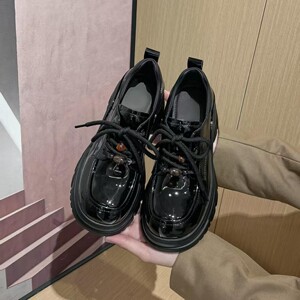 复古英伦风小皮鞋女2025年新款粗高跟单鞋轻便漆皮系带休闲乐福鞋